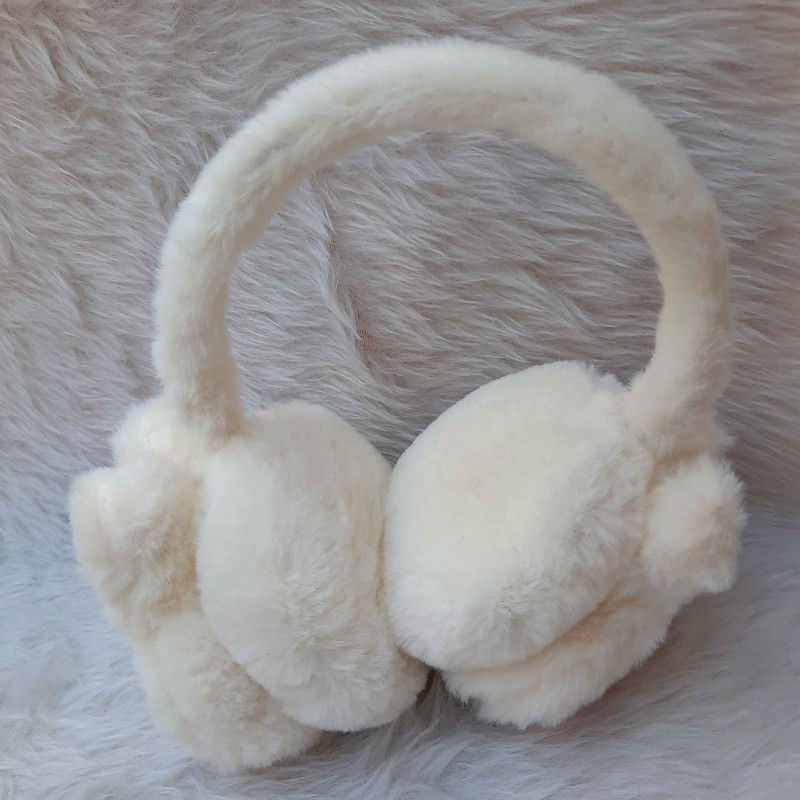 گوش گیر زمستانی بچگانه مدل هدفونی پشمی طرح خرگوش رنگ شیری