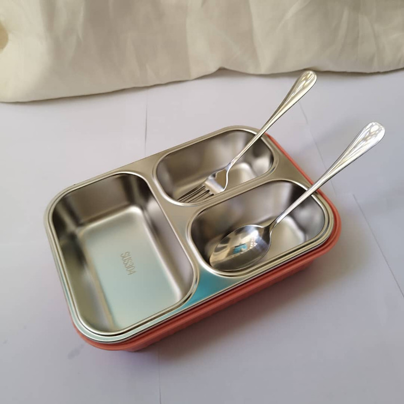 این ظرف غذا دارای سه قسمت جداگانه از جنس استیل مرغوب برای انواع سالاد، برنج و خورشت است.دارای یک لایه واشر جهت جلوگیری از نشتی غذا میباشد.قابلیت گرم نگهداشتن غذا بمدت طولانی است و مقاومت در برابر دمای ۲۰ تا ۱۰۰ درجه سانتیگراد را دارد.پلاستیک فشرده درجه یک و عاری از هر گونه مواد سمی (BPA free) است .دارای قاشق و چنگال استیل مرغوب میباشد و جایی مخصوص برای آن در نظر گرفته شده است.